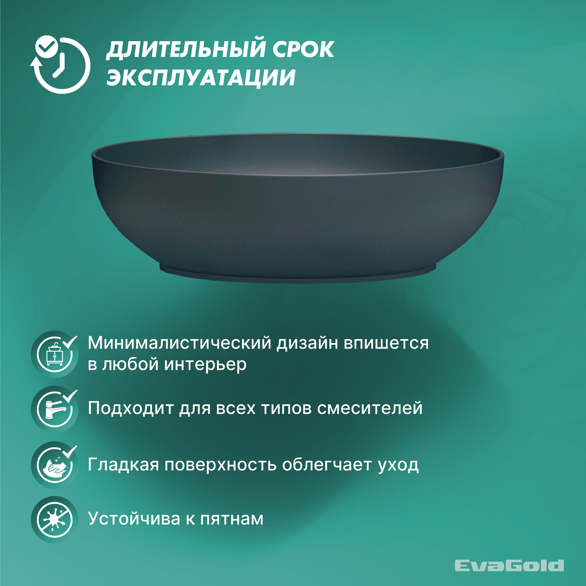 Раковина для ванной накладная EvaGold 515*390*145 мм, модель LP601.21 серый матовый: сравнение цен, характеристики, фото, актуальное наличие и цены.