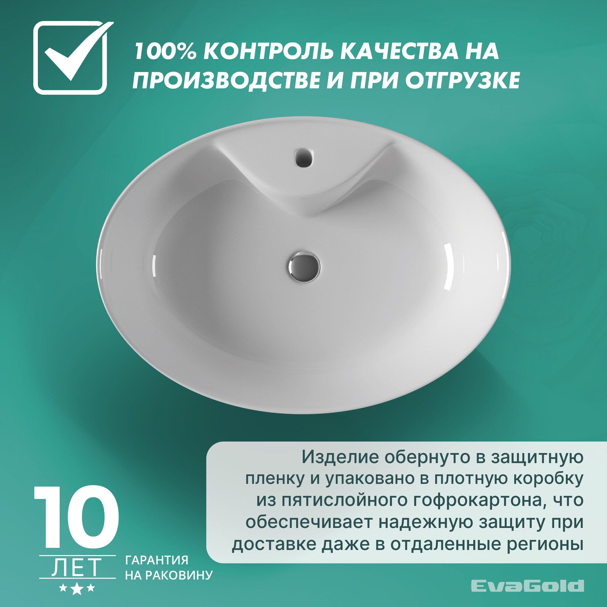 Раковина для ванной накладная EvaGold 570*410*145 мм, модель ND601.36 белый: сравнение цен, характеристики, фото, актуальное наличие и цены.