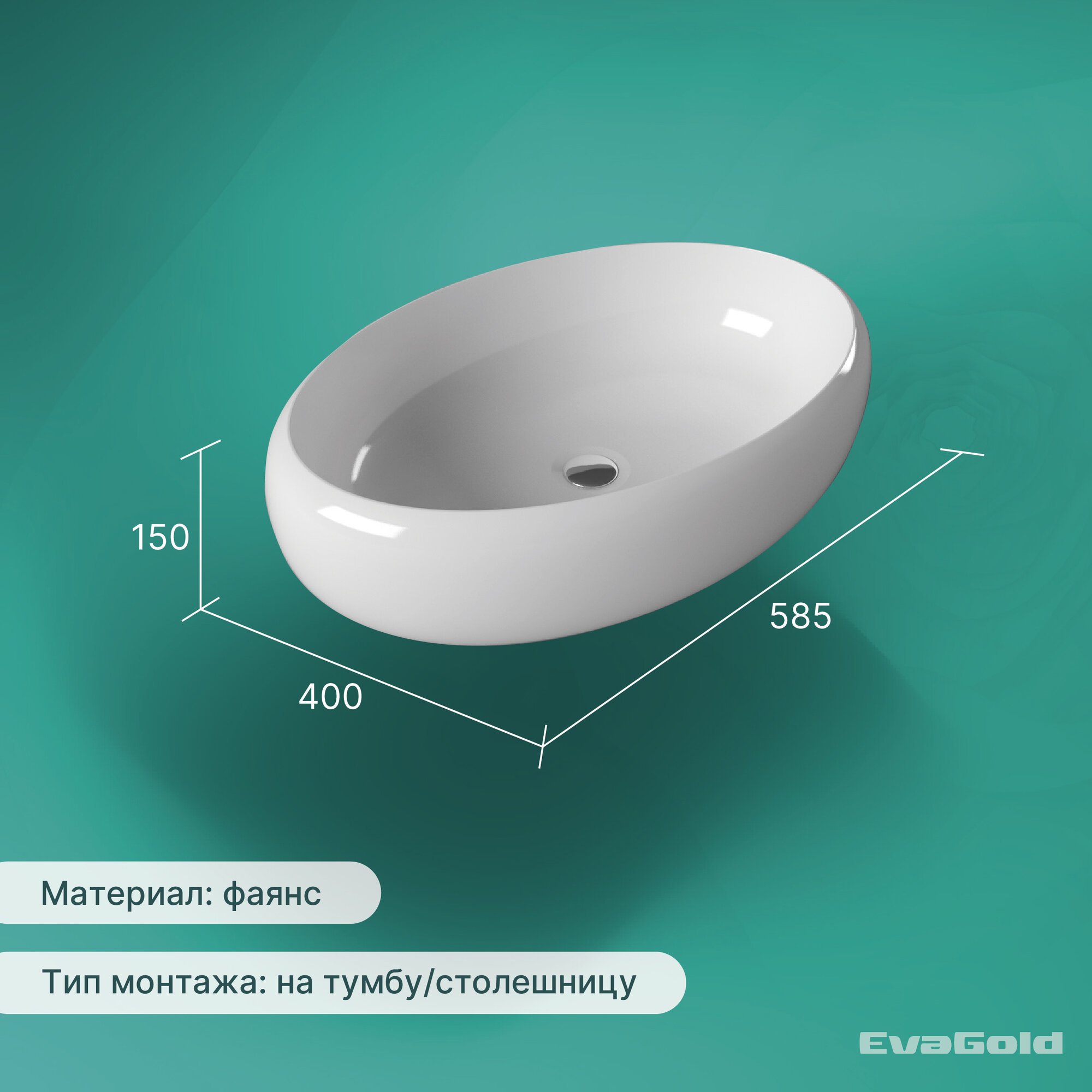 Раковина для ванной накладная EvaGold 585*400*150 мм, модель ND601.9 белый: сравнение цен, характеристики, фото, актуальное наличие и цены.