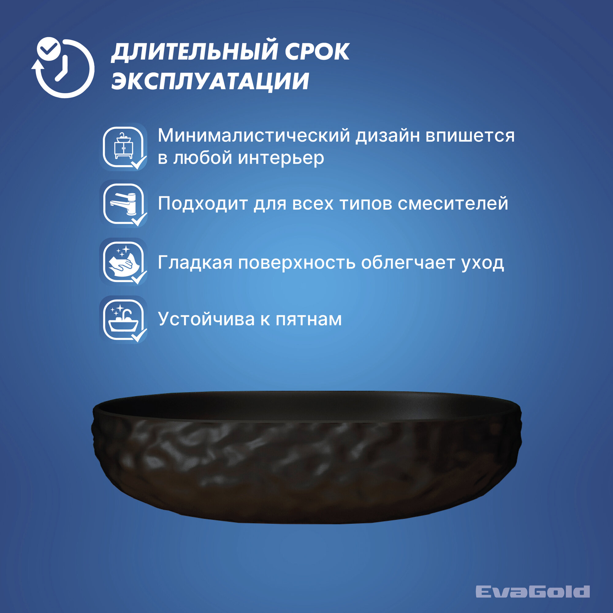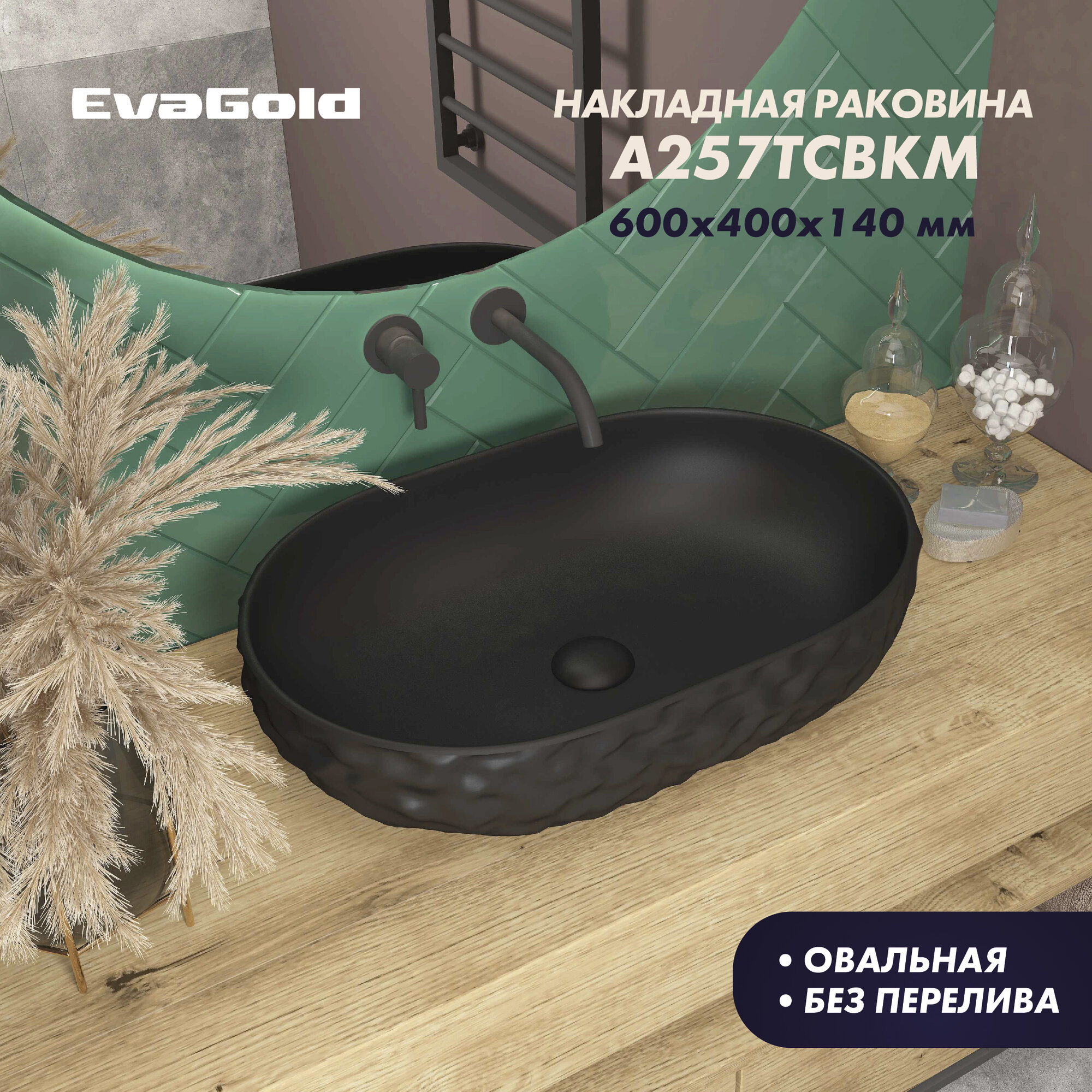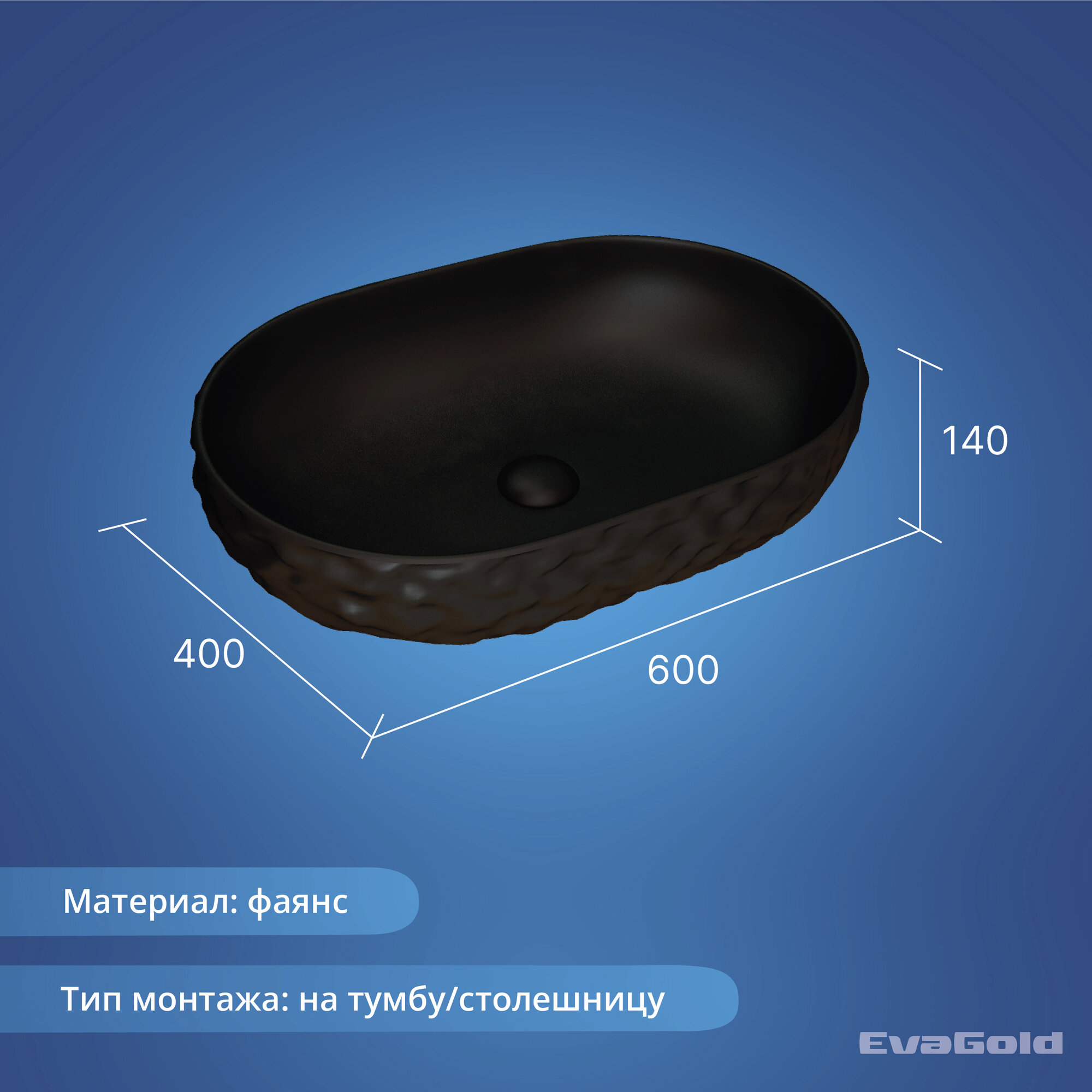 Раковина для ванной накладная EvaGold 600*400*140 мм, модель ND601.14 черный матовый: сравнение цен, характеристики, фото, актуальное наличие и цены.