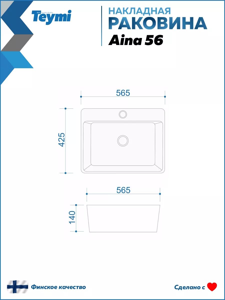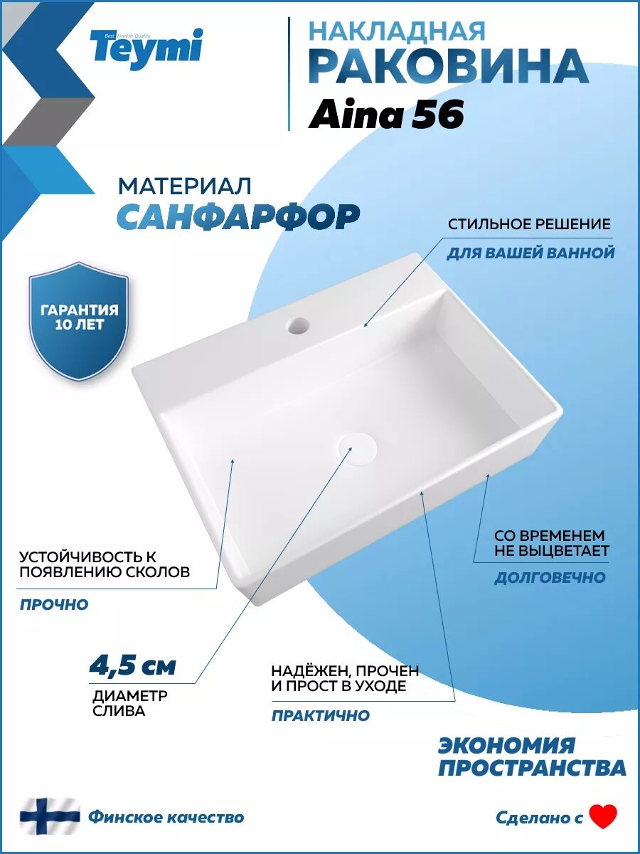 Раковина для ванной накладная Teymi Aina 56 белая T50005: сравнение цен, характеристики, фото, актуальное наличие и цены.