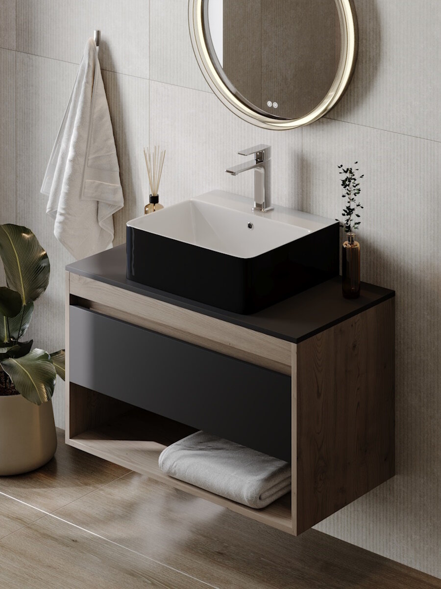 Раковина для ванной накладная Teymi Helmi 46 Duo черно-белый глянец T50271: сравнение цен, характеристики, фото, актуальное наличие и цены.