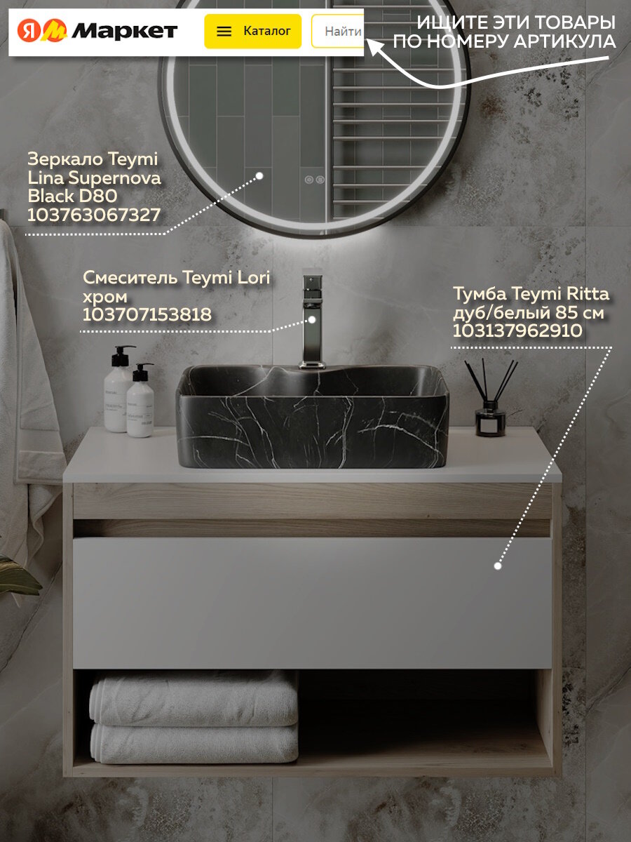 Раковина для ванной накладная Teymi Helmi S 48 черный мрамор T50262: сравнение цен, характеристики, фото, актуальное наличие и цены.