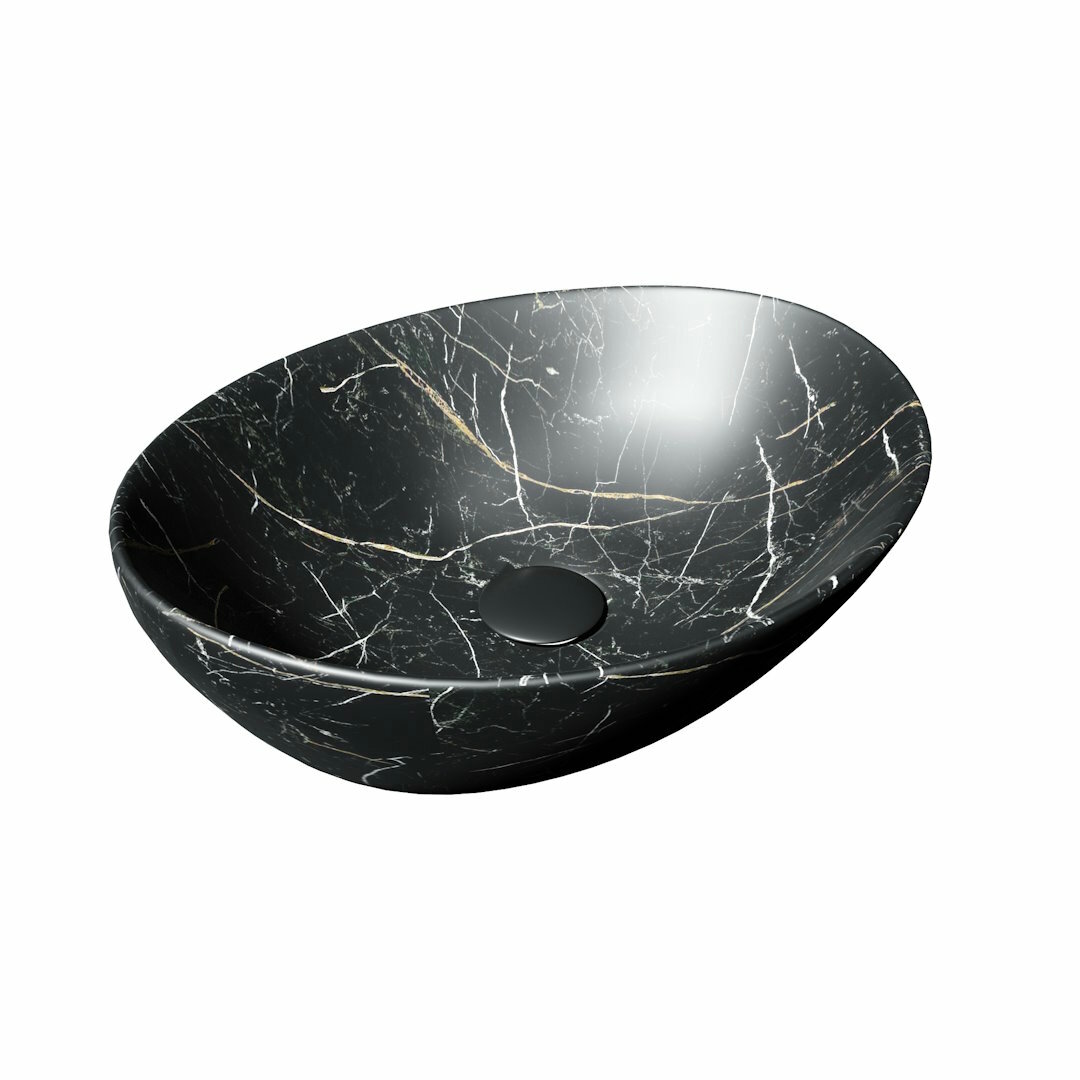 Купить Раковина для ванной накладная Teymi Lori 40 черный мрамор в комплекте смеситель высокий черный матовый F12845 с доставкой по всей России.