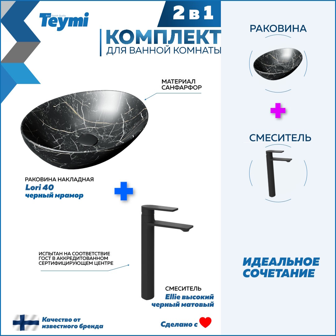 Купить Раковина для ванной накладная Teymi Lori 40 черный мрамор в комплекте смеситель высокий черный матовый F12921 с доставкой по всей России. Раковина для ванной накладная Teymi Lori 40 черный мрамор в комплекте смеситель высокий черный матовый F12921: сравнение цен, характеристики, фото, актуальное наличие и цены.