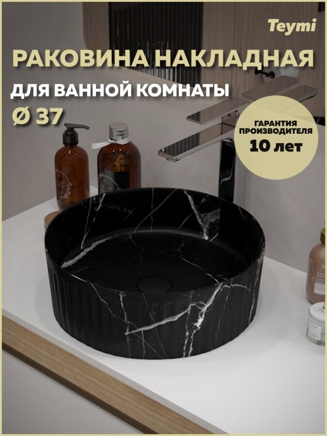 Раковина для ванной накладная Teymi Martta D37 цвет мрамор черный матовый T52183: сравнение цен, характеристики, фото, актуальное наличие и цены.