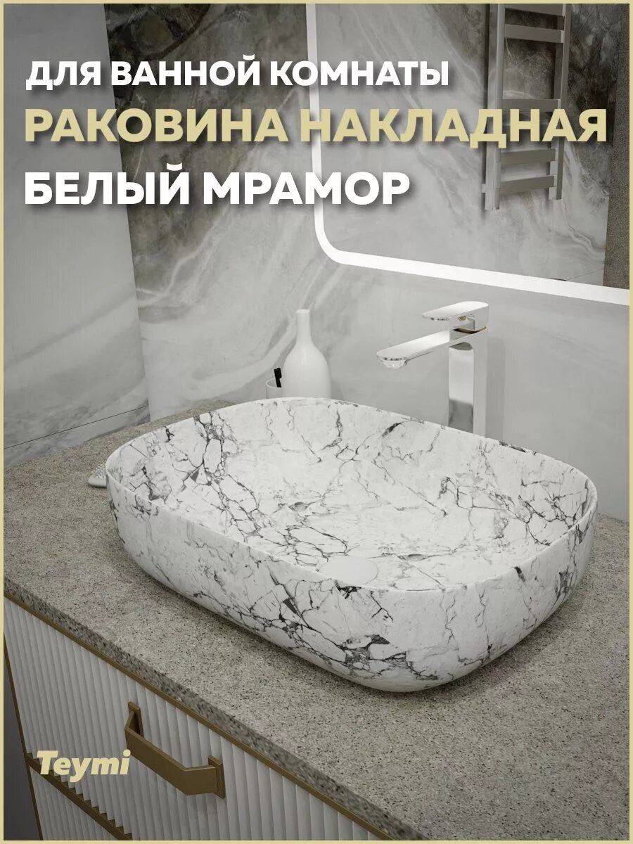 Купить Раковина для ванной накладная Teymi Solli 60 artceramic цвет белый мрамор T50398 с доставкой по всей России.