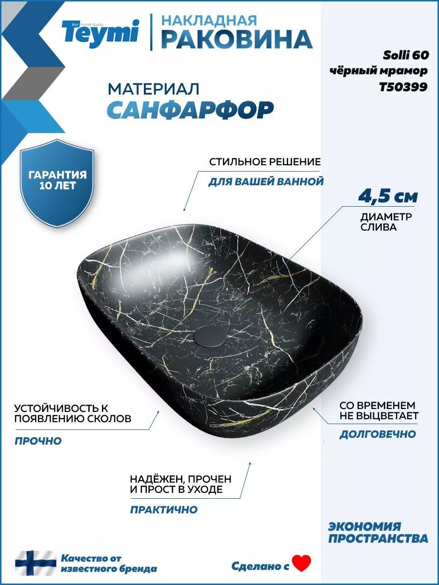 Раковина для ванной накладная Teymi Solli 60 artceramic цвет черный мрамор T50399: сравнение цен, характеристики, фото, актуальное наличие и цены.