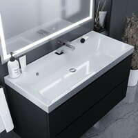 Комплект из тумбы с раковиной можно дополнить зеркалом с подсветкой Uperwood Tanos и подвесным шкафом-пеналом Uperwood Tanos.