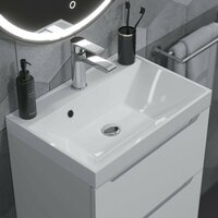 Лаконичная форма раковины отлично впишется в любой современный интерьер ванной комнаты. Раковина имеет встроенный перелив и отверстие для установки смесителя, а также бортик для размещения ванных принадлежностей. Для раковин Uperwood Classic подходят подвесные или напольные тумбы под раковину Uperwood Tanos соответствующие раковинам по ширине (кроме тумб для установки со стиральной машиной) белого, черного или белого с графитовыми вставками цвета.