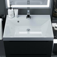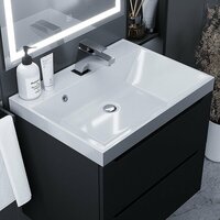 Лаконичная форма раковины отлично впишется в любой современный интерьер ванной комнаты. Раковина имеет встроенный перелив и отверстие для установки смесителя, а также бортик для размещения ванных принадлежностей. Для раковин Uperwood Classic подходят подвесные или напольные тумбы под раковину Uperwood Tanos соответствующие раковинам по ширине (кроме тумб для установки со стиральной машиной) белого, черного или белого с графитовыми вставками цвета.