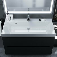 Комплект из тумбы с раковиной можно дополнить зеркалом с подсветкой Uperwood Tanos и подвесным шкафом-пеналом Uperwood Tanos.