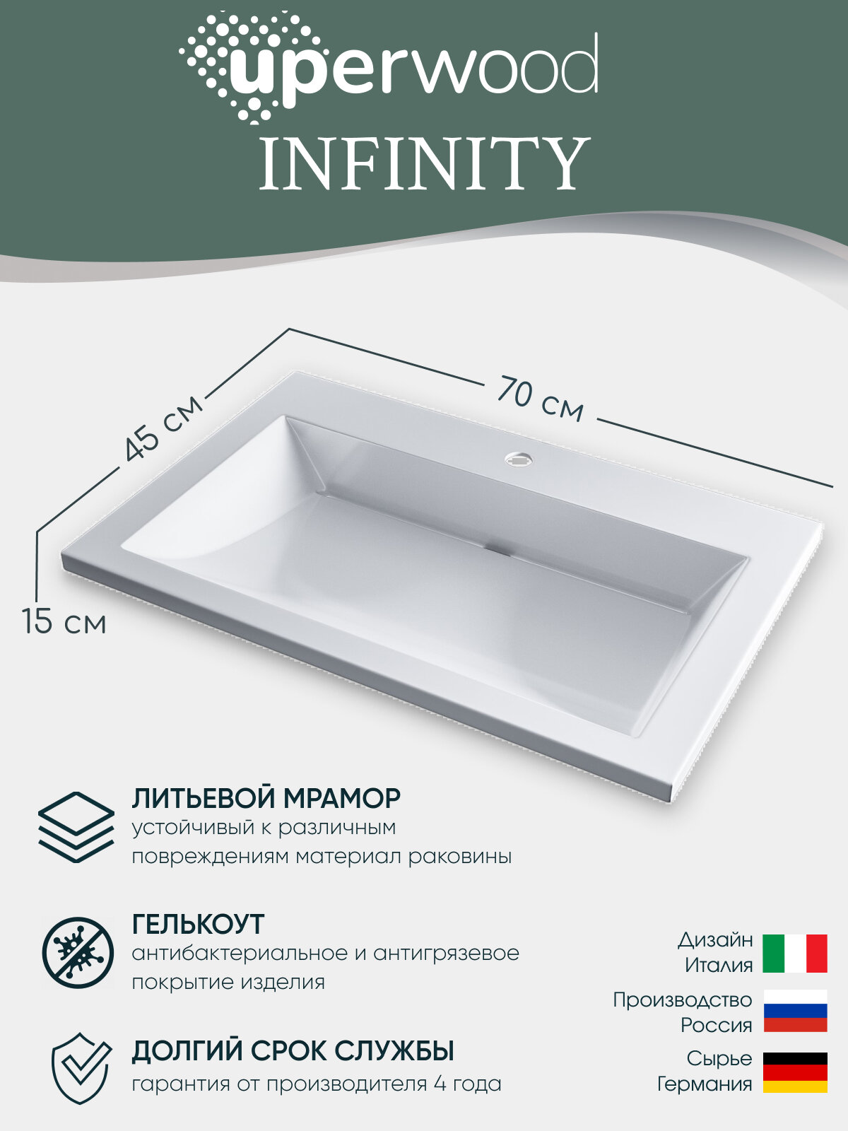 Купить Раковина для ванной Uperwood Infinity 70х45 см, белая глянцевая с доставкой по всей России. Раковина для ванной Uperwood Infinity 70х45 см, белая глянцевая: сравнение цен, характеристики, фото, актуальное наличие и цены.