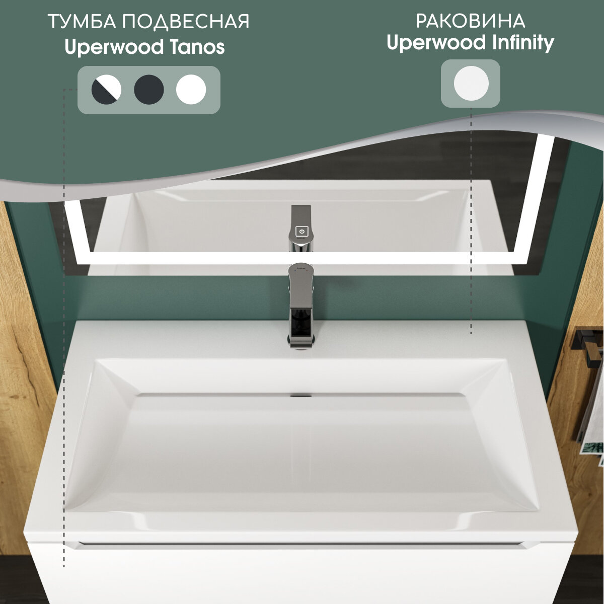 Рекомендуем дополнить тумбу с раковиной подвесным шкафом-пеналом из коллекций Uperwood Tanos или Uperwood Barsa в цвет тумбы, а также зеркалом для ванной комнаты с подсветкой из коллекций Uperwood Tanos 80х80 см (арт. 291020222) или Uperwood Barsa 80x70 см (арт. 2930205443).