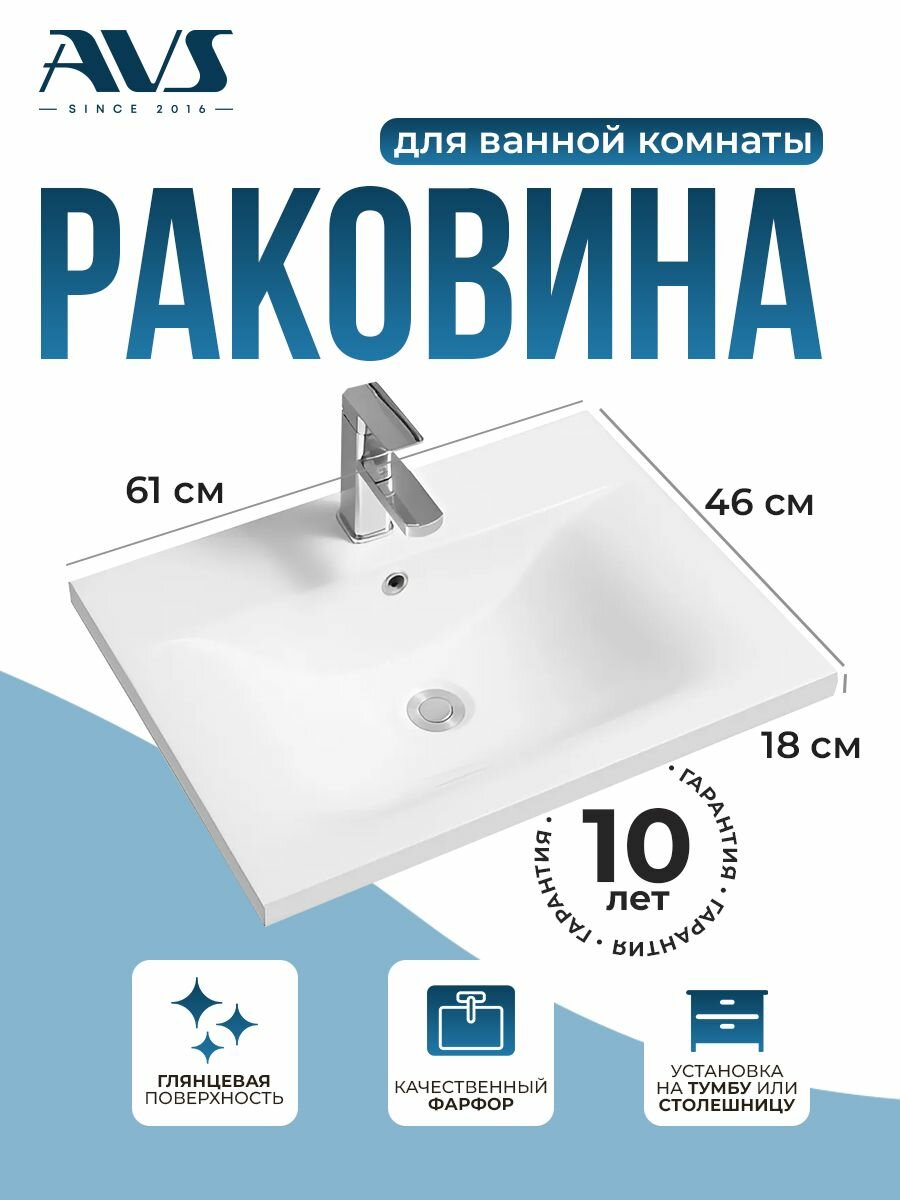 Купить Раковина для ванной врезная AVS 61см x 46см, белая глянцевая, накладная на столешницу или тумбу с доставкой по всей России. Раковина для ванной врезная AVS 61см x 46см, белая глянцевая, накладная на столешницу или тумбу: сравнение цен, характеристики, фото, актуальное наличие и цены.