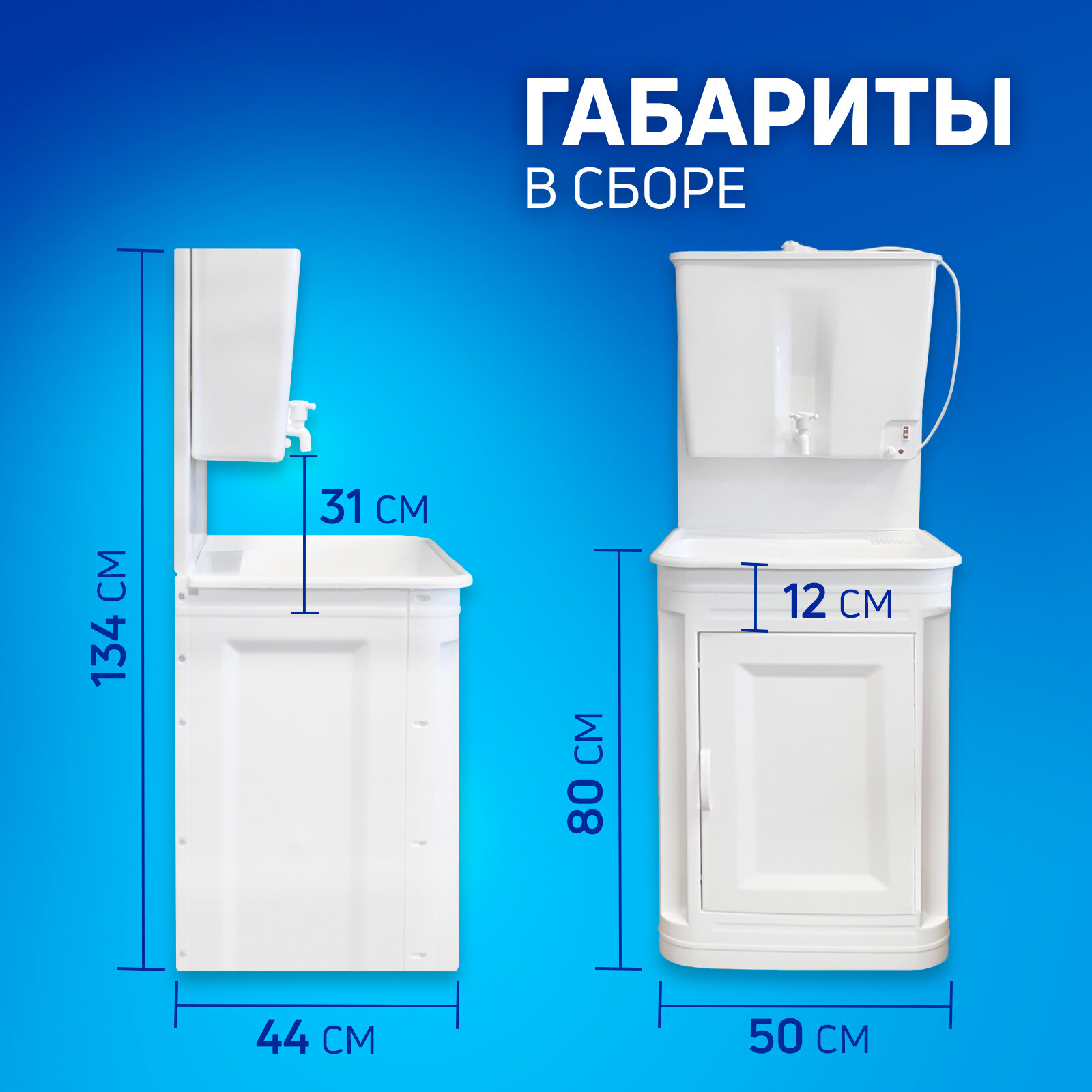 - Занимаемый объем - Электрический водонагреватель, раковина с выпуском, тумба разборная