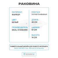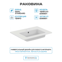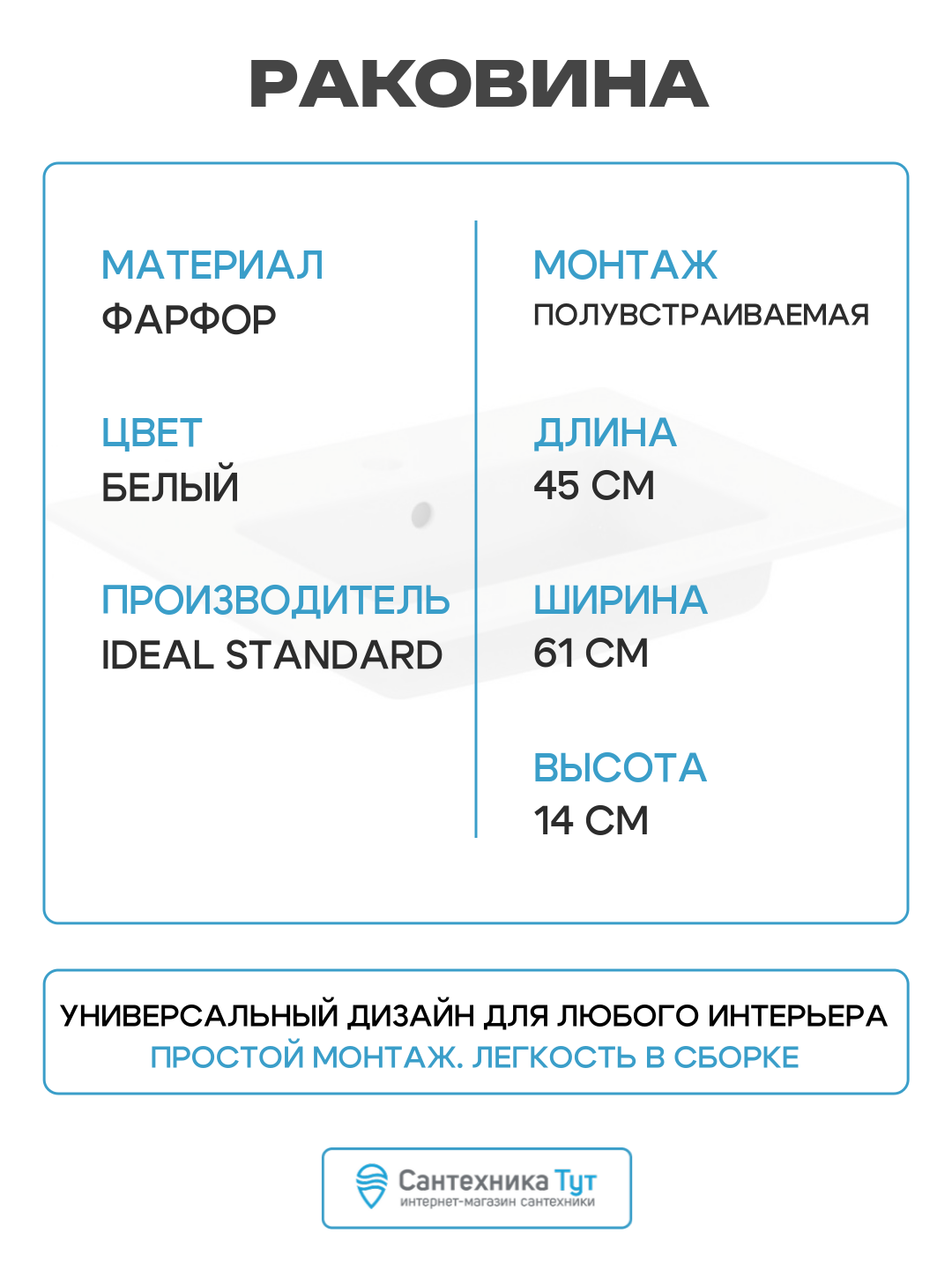 Раковина Ideal Standard Tempo 61 E066801 Euro White фарфор полувстраиваемая 61: сравнение цен, характеристики, фото, актуальное наличие и цены.