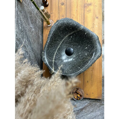 Раковина накладная из натурального цельного камня Black Swan. Ручная работа.