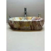 Раковина из природного камня привносит в ваше пространство атмосферу спокойствия и гармонии. Теплые, естественные оттенки и уникальные узоры создают уютную обстановку, которая будет радовать вас каждый день. Стильная комбинация природных линий и текстур делает ее идеальным дополнением к любому интерьеру, от современного до классического.