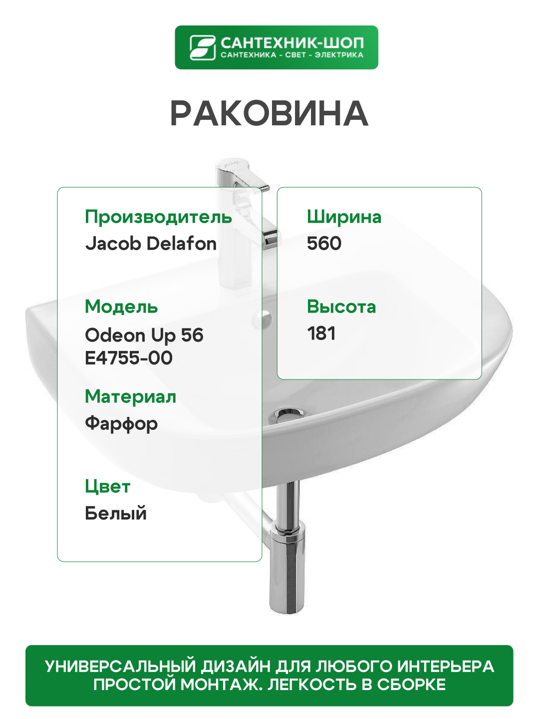 Купить Раковина Jacob Delafon Odeon Up 56 E4755-00 фарфор подвесная 56 с доставкой по всей России. Раковина Jacob Delafon Odeon Up 56 E4755-00 фарфор подвесная 56: сравнение цен, характеристики, фото, актуальное наличие и цены.