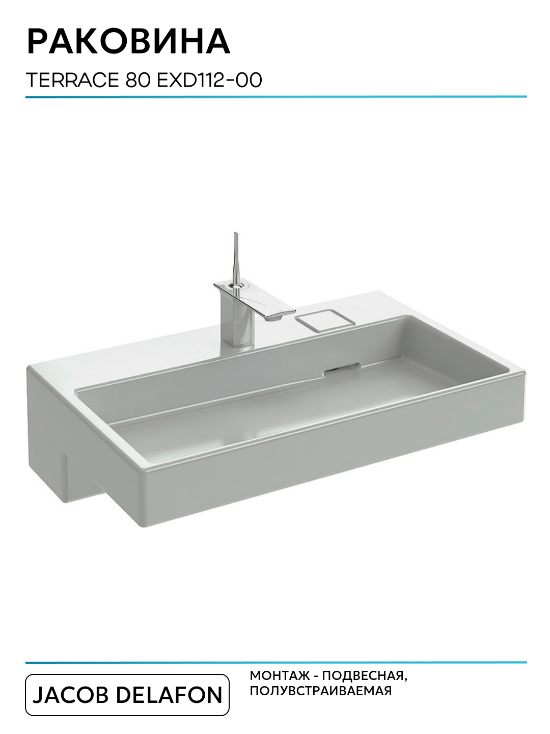 Купить Раковина Jacob Delafon Terrace 80 EXD112-00 без подсветки фарфор подвесная, полувстраиваемая 80 с доставкой по всей России.