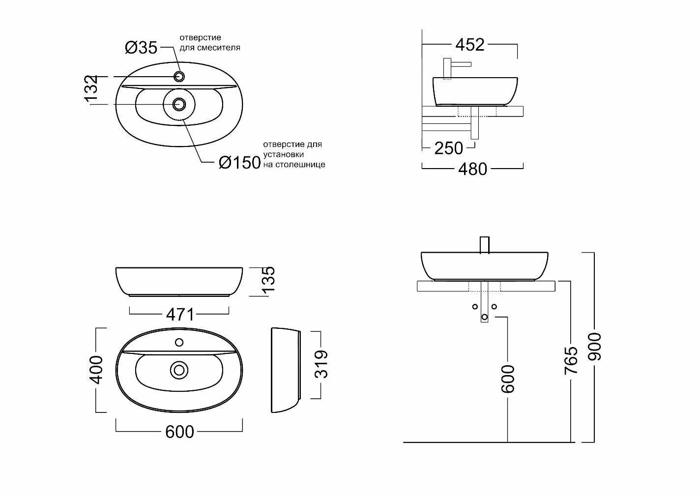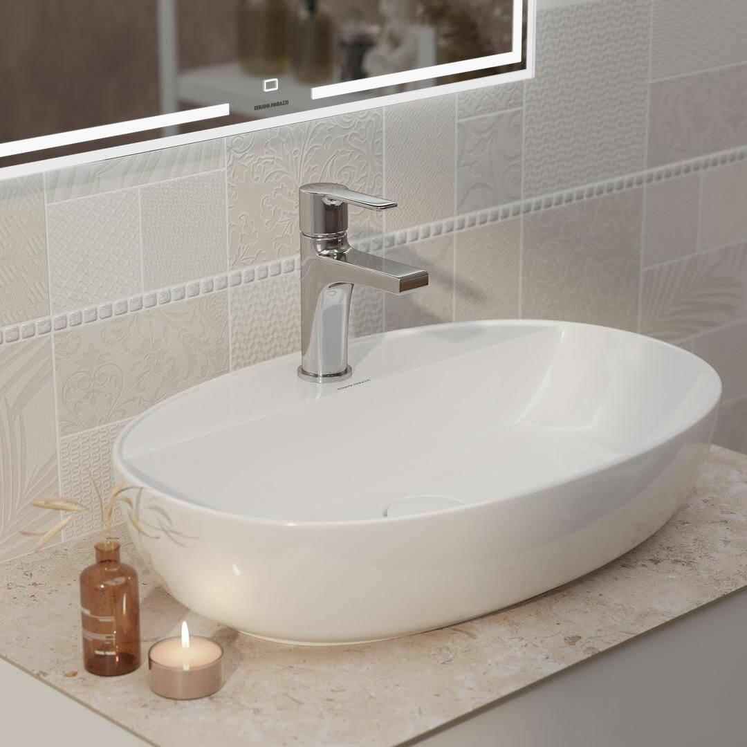 Kerama Marazzi Раковина PLAZA накладная 60*40*13,5см с 1 отв. под смеситель, без перелива, цвет бела: сравнение цен, характеристики, фото, актуальное наличие и цены.