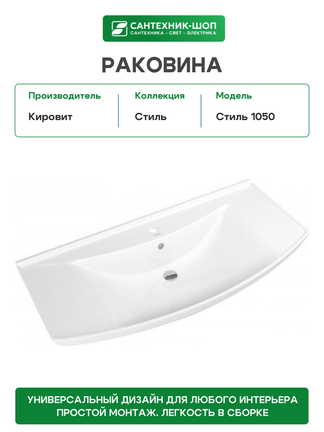 Купить Раковина Кировит Стиль 1050 Белая с доставкой по всей России. Раковина Кировит Стиль 1050 Белая: сравнение цен, характеристики, фото, актуальное наличие и цены.