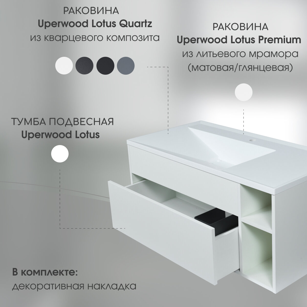 Раковина кварцевая для ванной Uperwood Lotus Quartz, 100х50х13 см, черная матовая, космос: сравнение цен, характеристики, фото, актуальное наличие и цены.