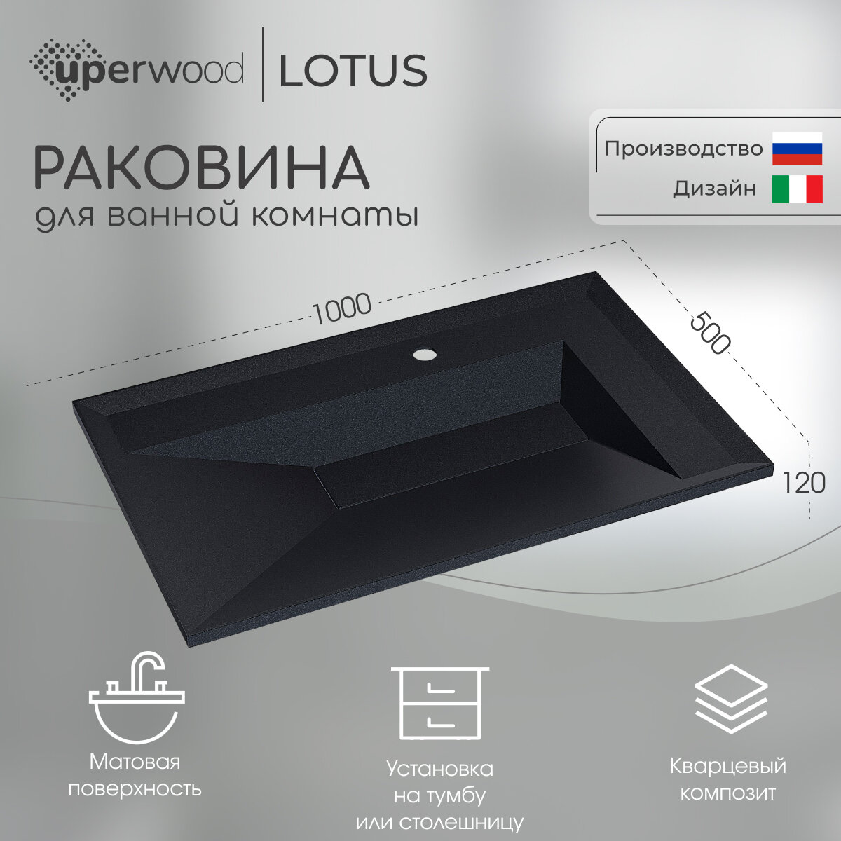Раковина кварцевая для ванной Uperwood Lotus Quartz, 80х50х13 см, черная матовая, космос: сравнение цен, характеристики, фото, актуальное наличие и цены.