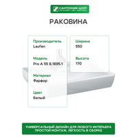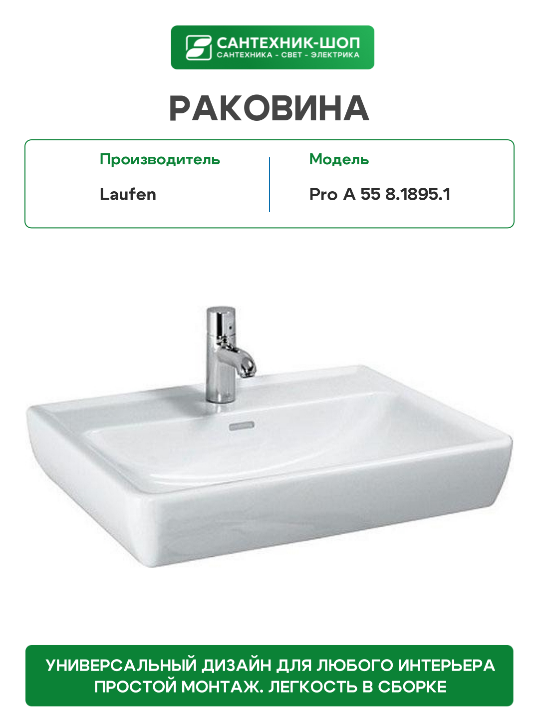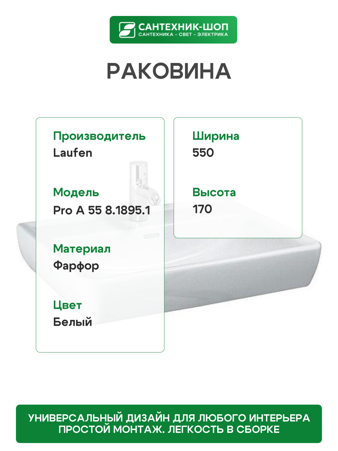 Раковина Laufen 8.1895.1, подвесная, прямоугольная, фарфоровая, белая, 55x48x17 см: сравнение цен, характеристики, фото, актуальное наличие и цены.