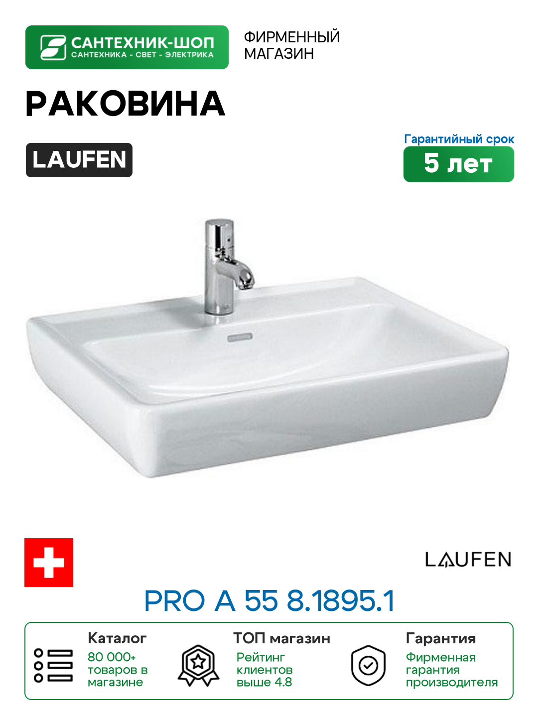 Купить Раковина Laufen 8.1895.1, подвесная, прямоугольная, фарфоровая, белая, 55x48x17 см с доставкой по всей России.