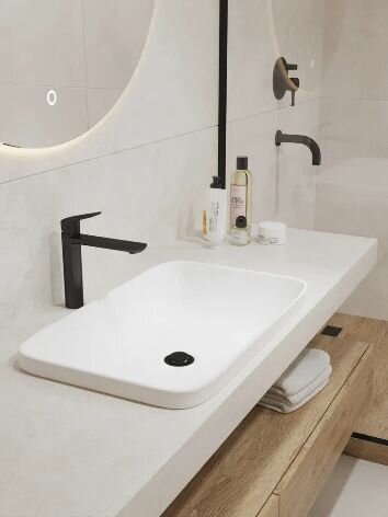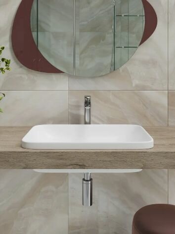 Эта раковина для ванной также оптимально подходит для установки как на тумбу, так и на столешницу, что расширяет возможности ее размещения. Универсальный стиль умывальника делает его отличным выбором для любого интерьера, будь то минималистичный или классический дизайн ванной комнаты.