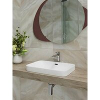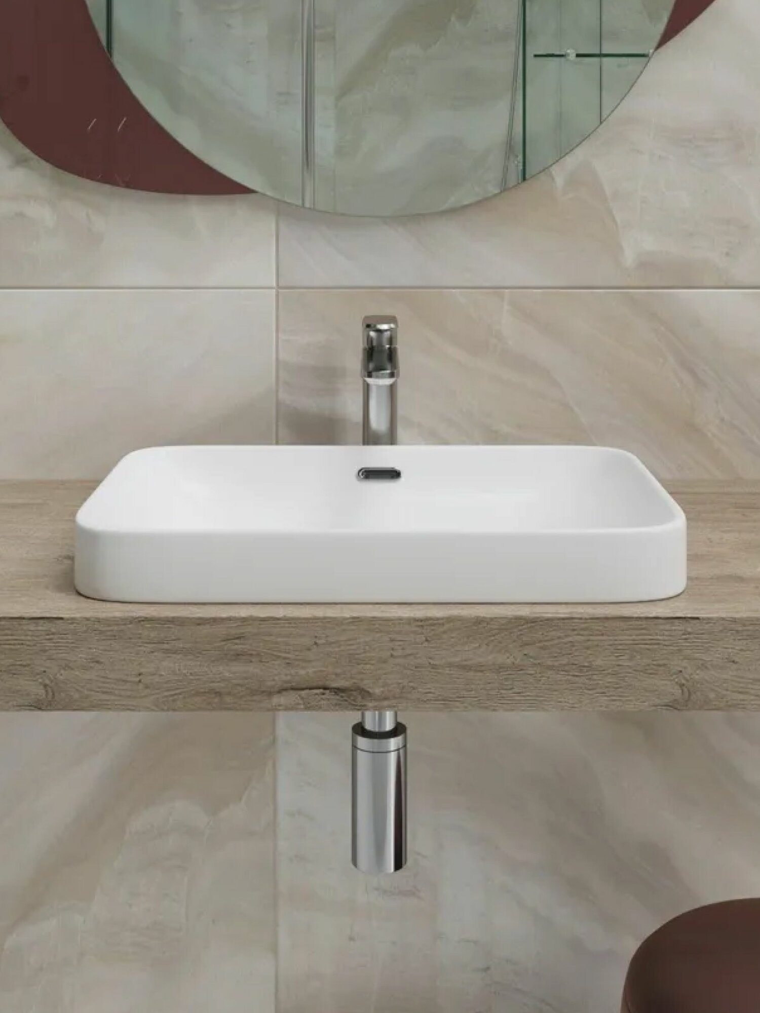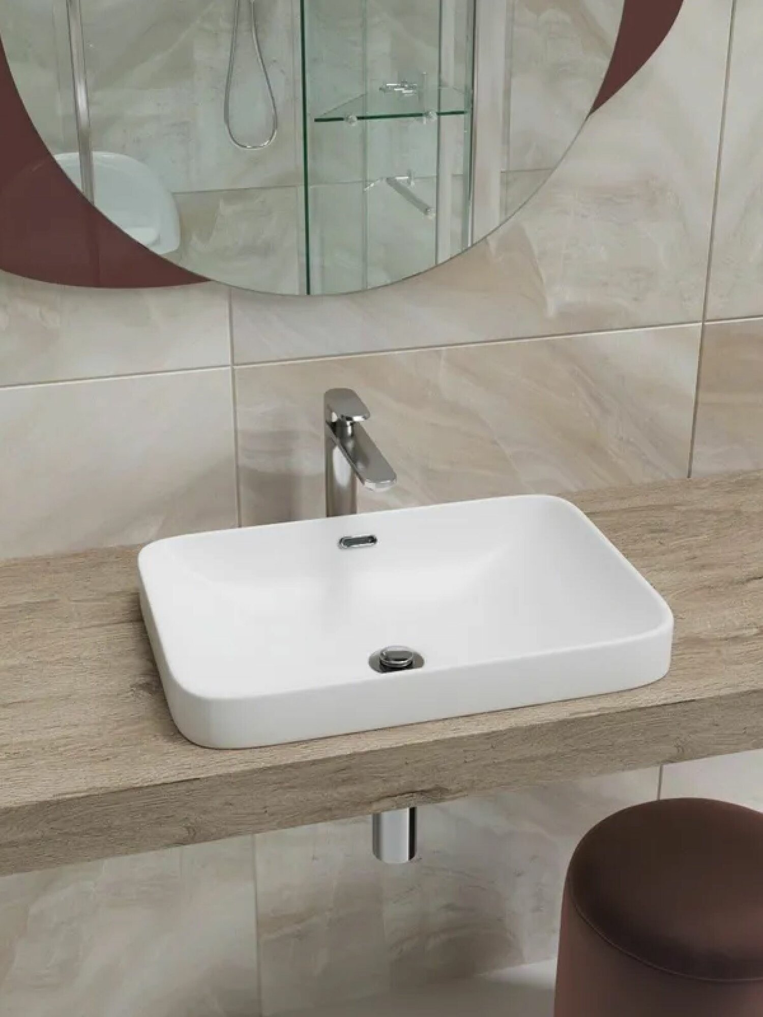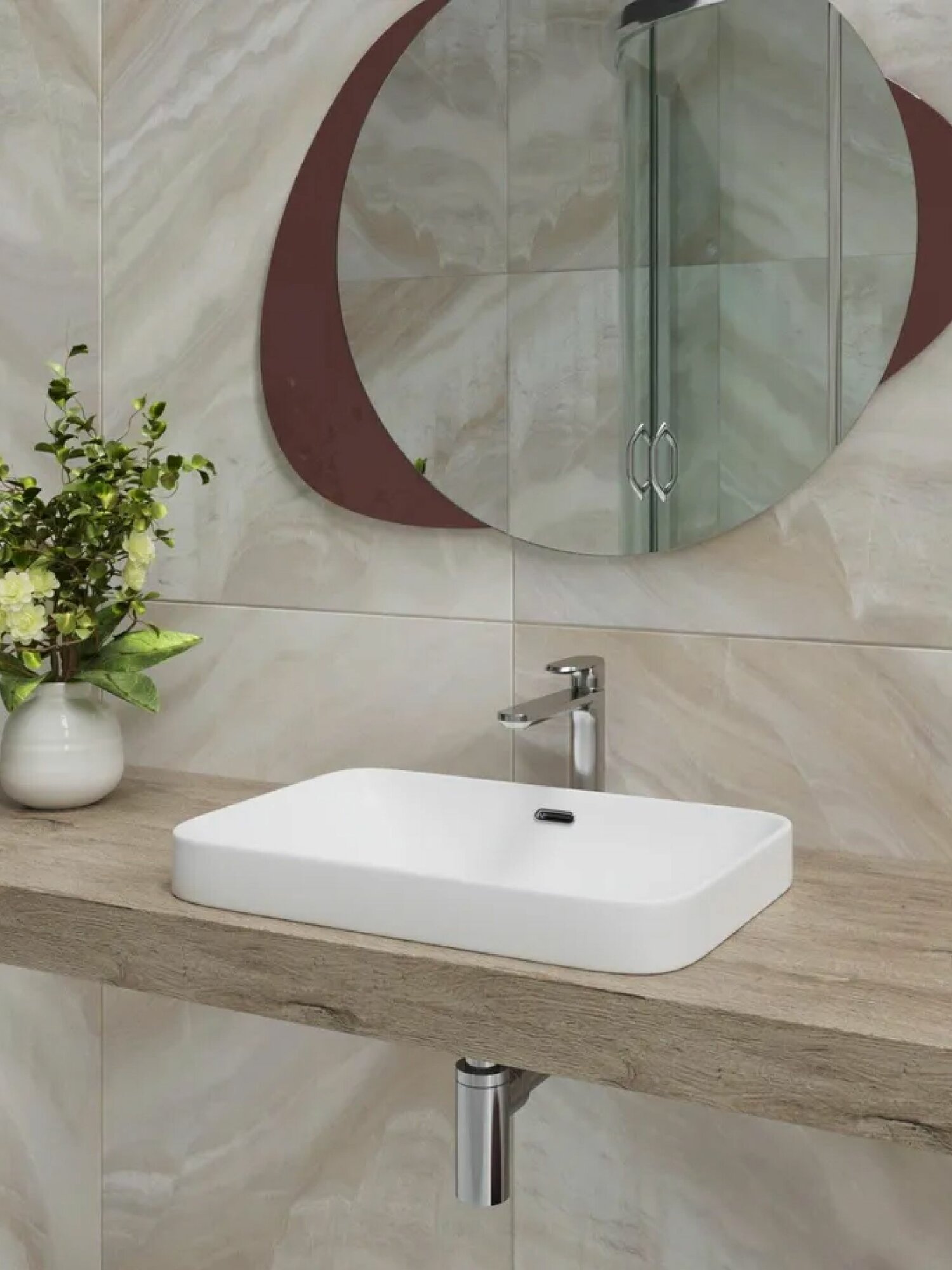 Эта раковина для ванной также оптимально подходит для установки как на тумбу, так и на столешницу, что расширяет возможности ее размещения. Универсальный стиль умывальника делает его отличным выбором для любого интерьера, будь то минималистичный или классический дизайн ванной комнаты.