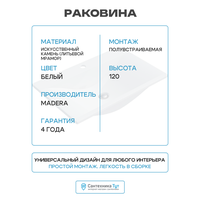 Купить Раковина Madera Pulsus 70 4627173210485 искусственный камень полувстраиваемая 70 Россия с доставкой по всей России. Раковина Madera Pulsus 70 4627173210485 искусственный камень полувстраиваемая 70 Россия: сравнение цен, характеристики, фото, актуальное наличие и цены.
