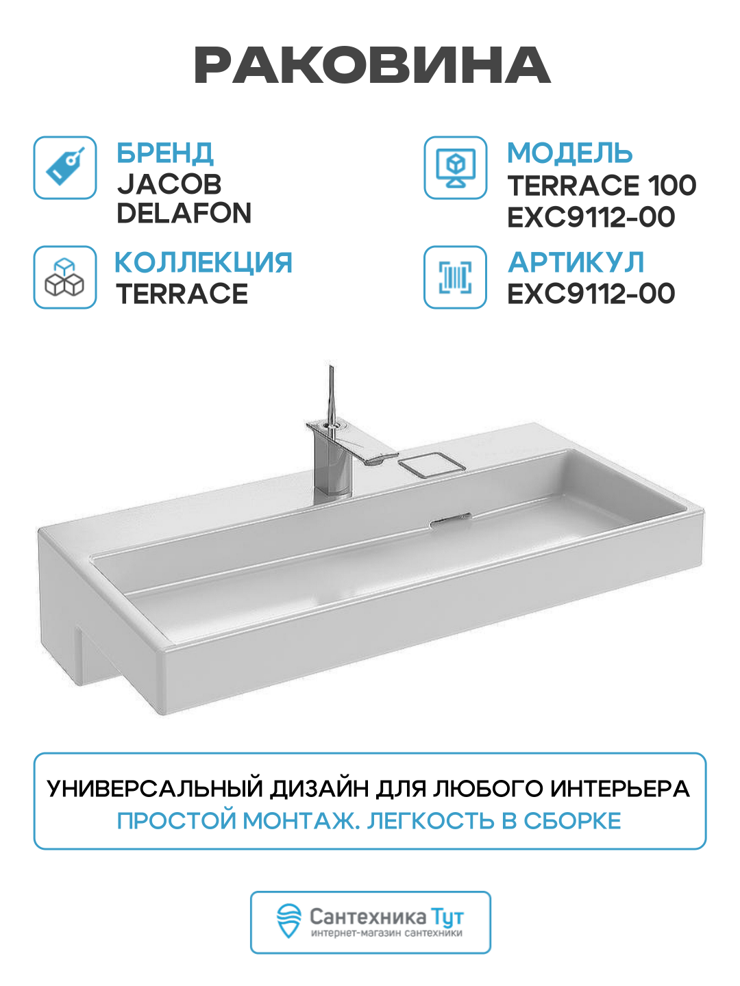 Раковина Jacob Delafon Terrace 100 EXC9112-00 с подсветкой фарфор подвесная, полувстраиваемая 100: сравнение цен, характеристики, фото, актуальное наличие и цены.