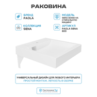Купить Раковина Paola Siena 60×60 на стиральную машину Белая глянцевая искусственный камень на стиральную машину 60 Россия с доставкой по всей России. Раковина Paola Siena 60×60 на стиральную машину Белая глянцевая искусственный камень на стиральную машину 60 Россия: сравнение цен, характеристики, фото, актуальное наличие и цены.