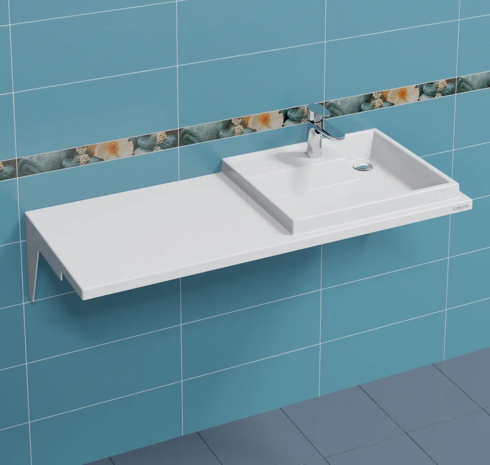 Купить Раковина над стиральной машиной СаНта Юпитер 110 R прямоугольная, белая, на кронштейнах, с левым крылом, российская с доставкой по всей России.