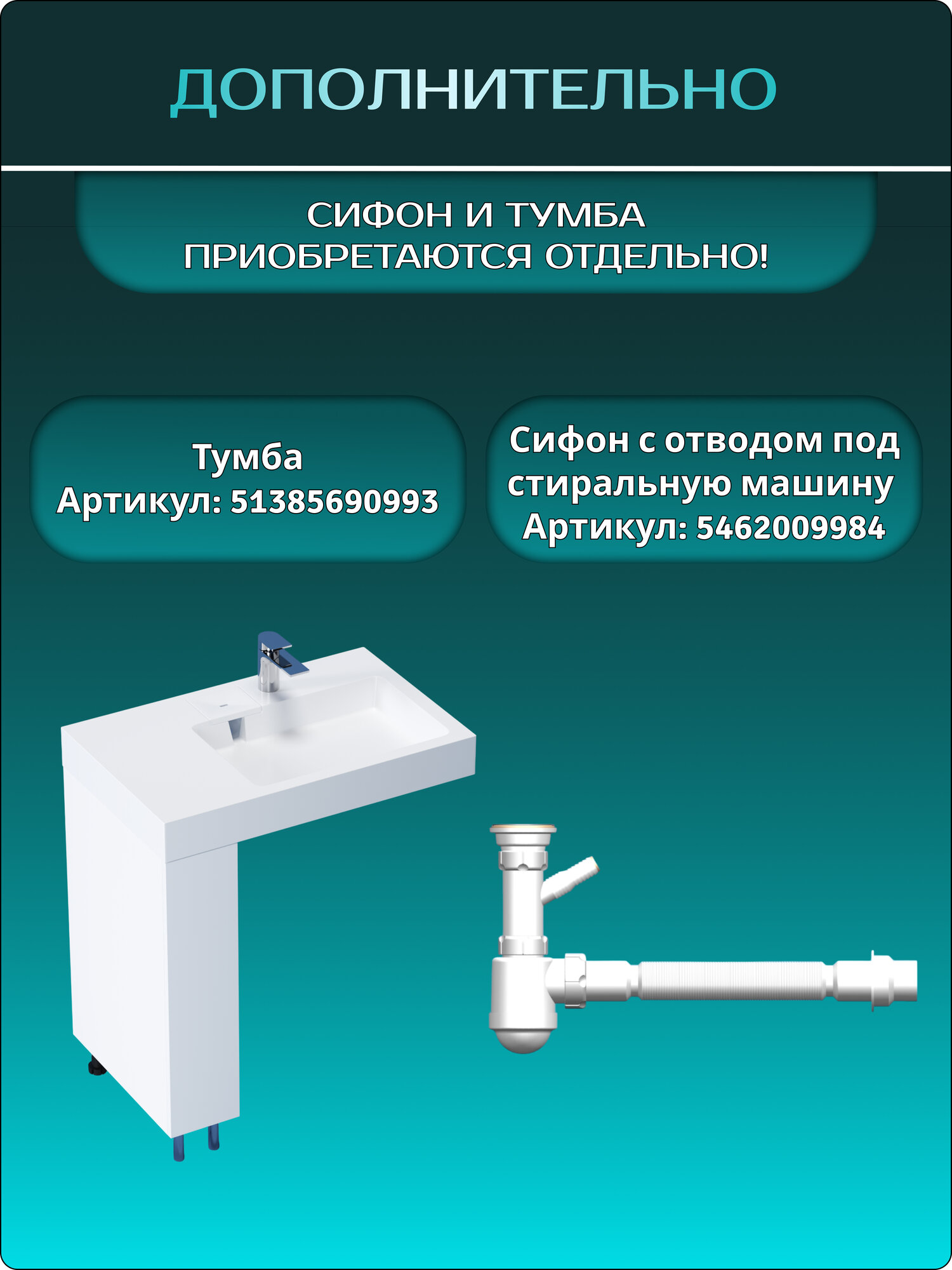 Установка раковины осуществляется на подвесную систему, над стиральной машиной, что обеспечивает легкость монтажа.