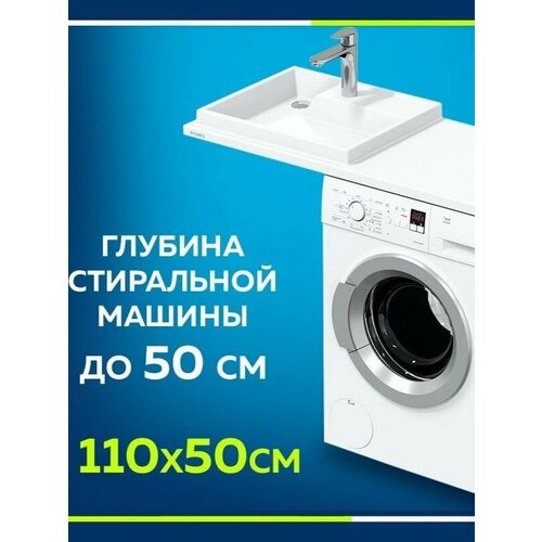 В наших моделях тумбы установлены под сливом раковины, а под крылом можно расположить стиральную машину. Одним из таких вариантов является раковина- столешница над стиральной машиной СаНта Юпитер 110. Изготовлена она из литьевого мрамора. Максимально возможная глубина стиральной машины 50 см. Возможна погрешность на размерах раковины на 0.5 мм.