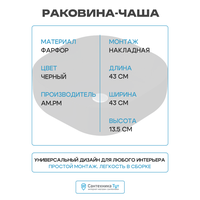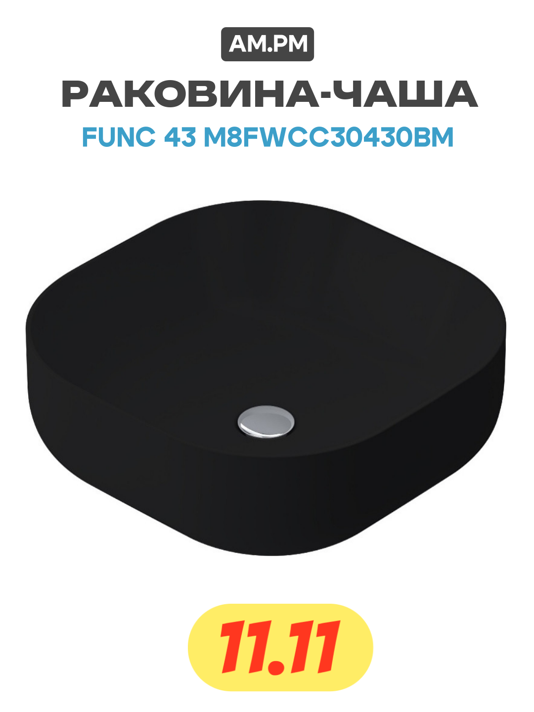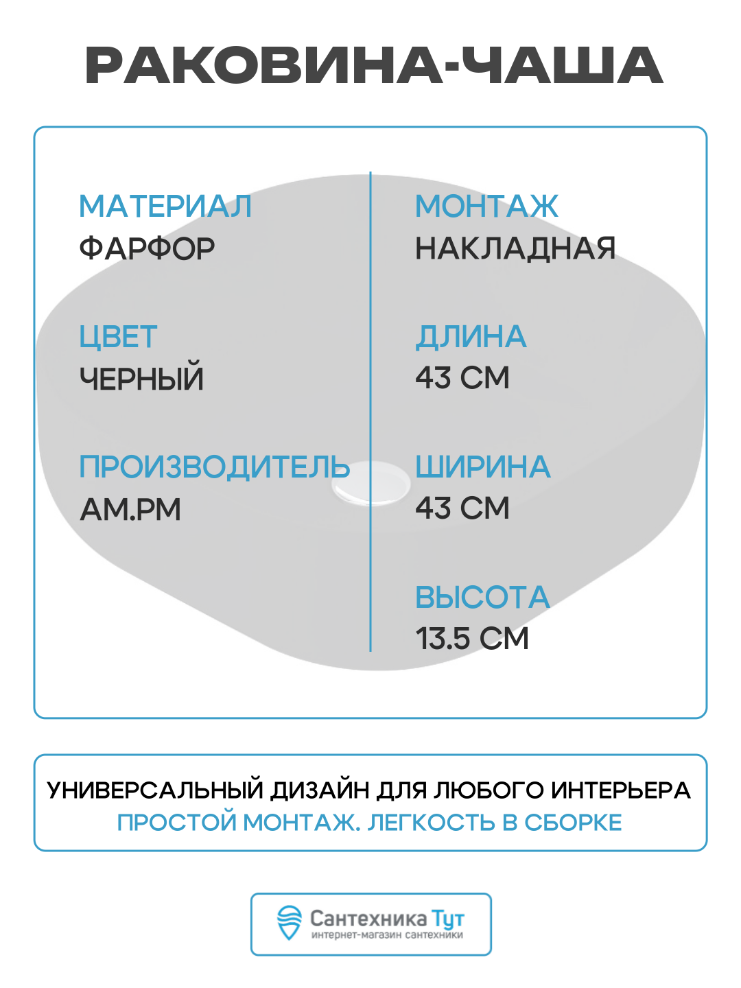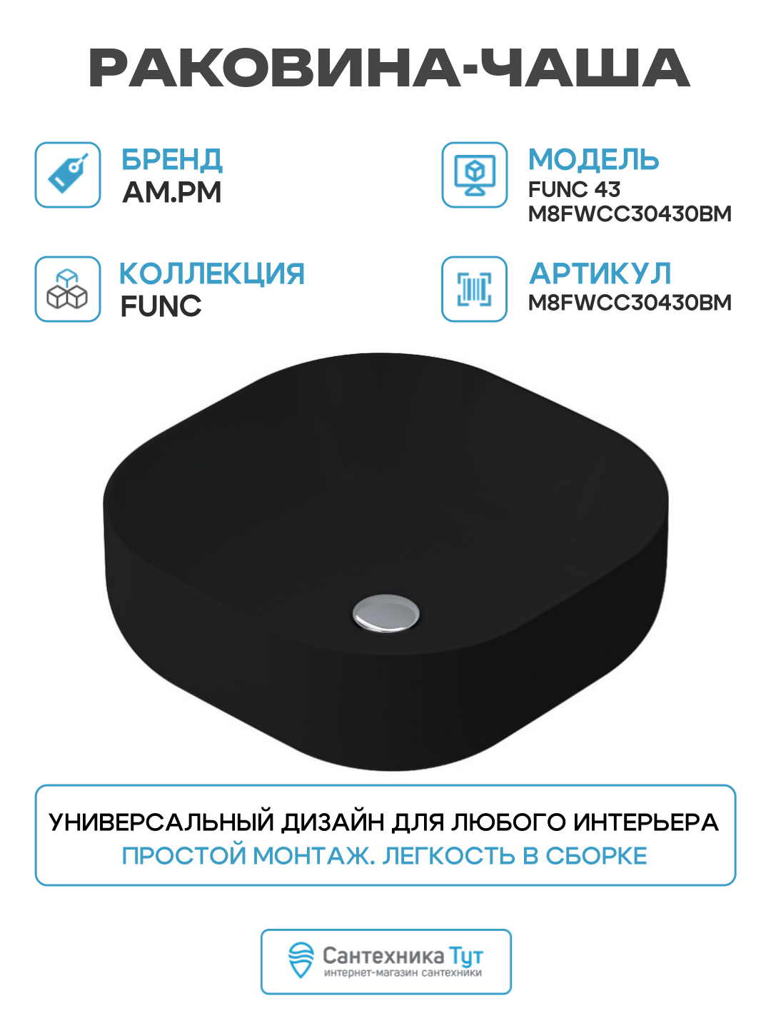 Раковина-чаша AM.PM Func 43 M8FWCC30430BM Черная матовая фарфор накладная 43 Германия: сравнение цен, характеристики, фото, актуальное наличие и цены.