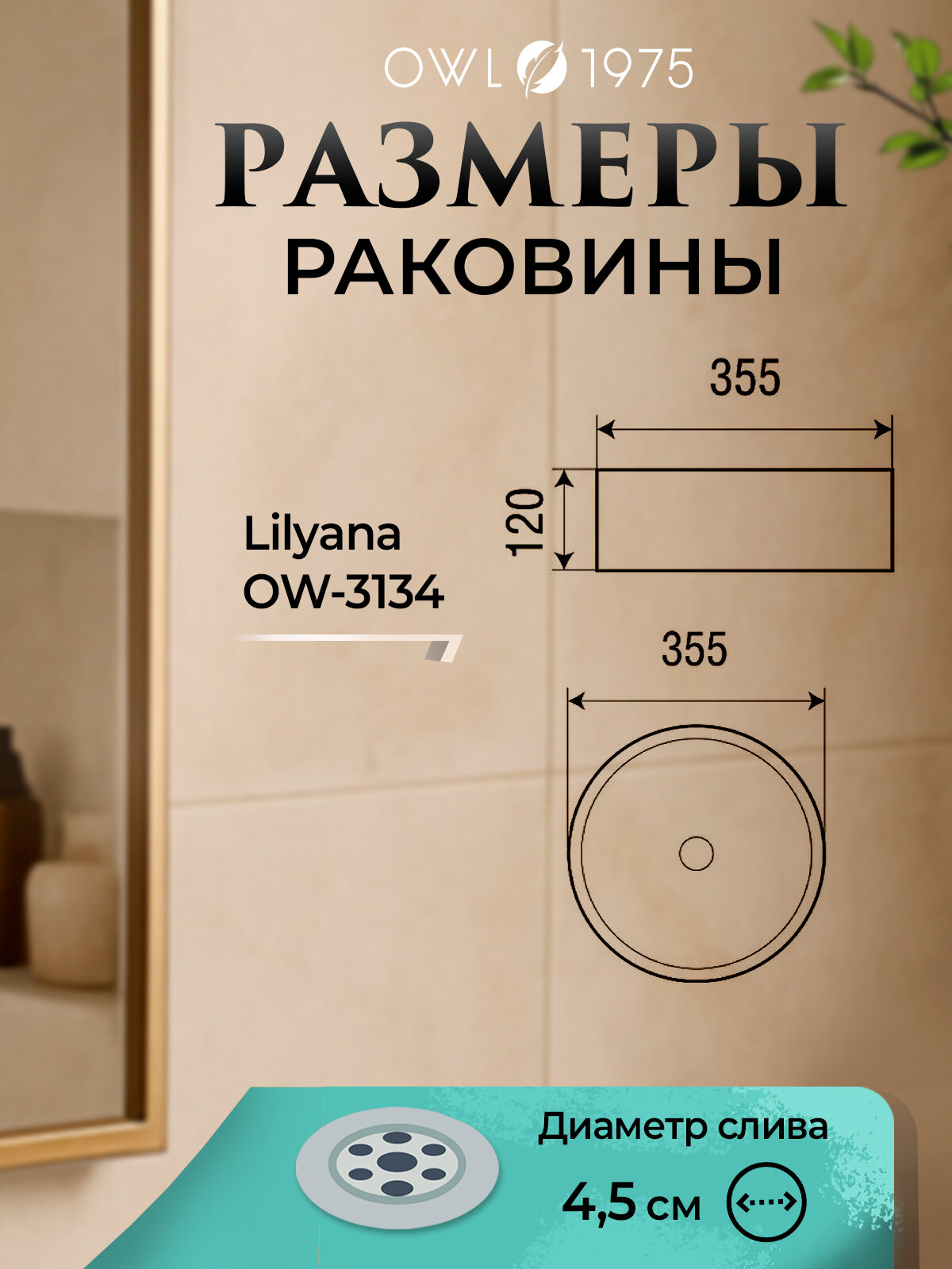 Раковина накладная для ванной на столешницу OWL 1975 Lilyana OW-3134: сравнение цен, характеристики, фото, актуальное наличие и цены.