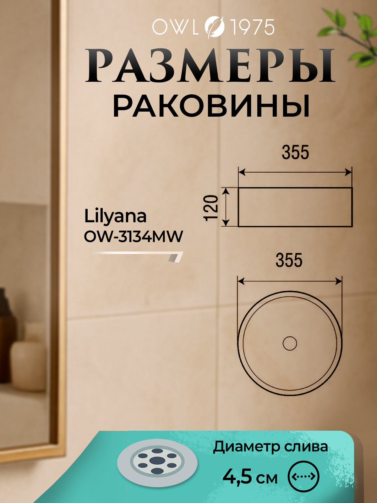 Раковина накладная для ванной на столешницу OWL 1975 Lilyana OW-3134MW: сравнение цен, характеристики, фото, актуальное наличие и цены.