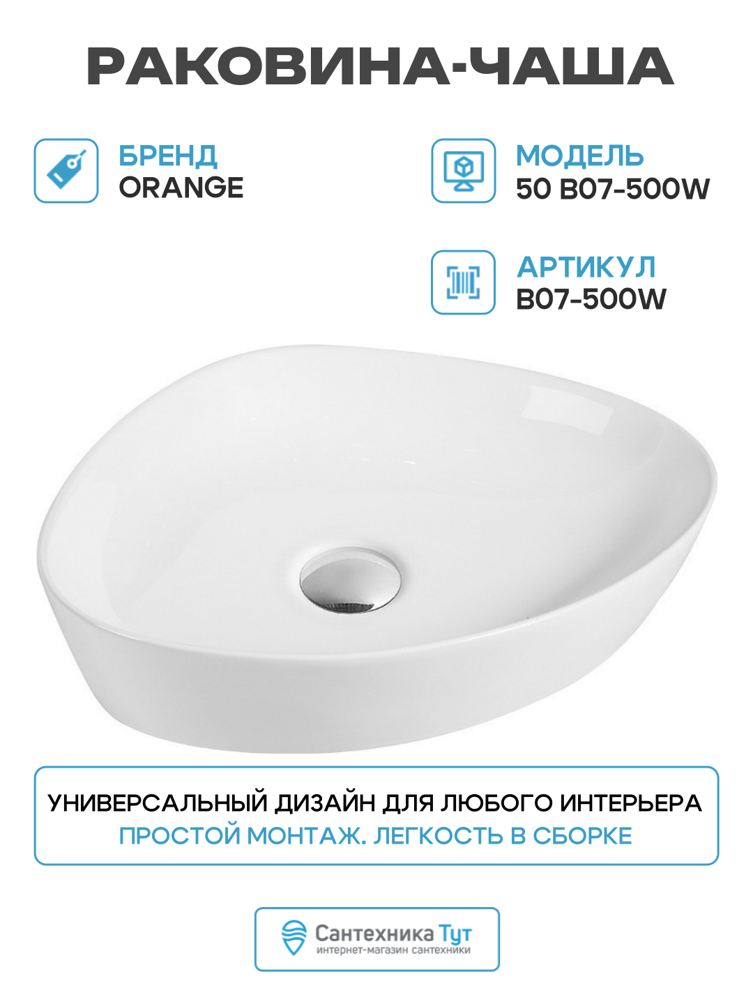 Купить Раковина Orange 50х40.5 B07-500W с доставкой по всей России. Раковина Orange 50х40.5 B07-500W: сравнение цен, характеристики, фото, актуальное наличие и цены.