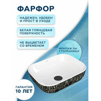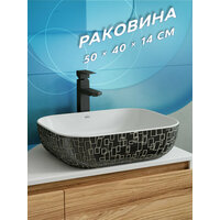 Раковина накладная прямоугольная BAU Stil 50х40, белая/черная с орнаментом: сравнение цен, характеристики, фото, актуальное наличие и цены.