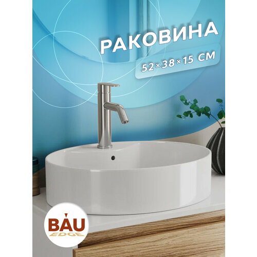 Раковина овальная накладная BAU Nimb 51х41, с отверстием под смеситель, белая - это рациональное использование свободного пространства в маленьком помещении — один из самых важных пунктов во время полноценного или косметического ремонта ванной комнаты. Чтобы не занимать место крупногабаритными конструкциями, стоит приобрести накладную раковину. Раковина BAU Nimb подходит для тумб со столешницей практически любых фирм, например: Roca, Cersanit, Triton, Акватон, Акванет, Aqwella, Grossman, Belbagno, Runo и многих других. Раковина изготовлена из санфарфора. Плюсы санфарфора: высокие прочность и плотность, натуральный белый цвет, минимальное влагопоглощение, гигиеничность, долговечность. Состав сырья для санитарного фарфора почти не отличается от фаянса. Это все те же белые глины, кварцевый песок и каолин. Кроме них присутствует еще и полевой шпат. Но вот пропорции, в которых добавляются компоненты, отличаются. Различается и технология производства материала. Формованные заготовки запекают при температуре 750-800˚С. При таком нагреве выжигаются все органические примеси, что дает фарфоровой массе однородный белоснежный цвет. На следующем этапе заготовки покрывают глазуровочной смесью. Однако ее состав тоже другой. Она не содержит пигментов, поскольку фарфор не надо окрашивать. Подготовленное таким образом изделие отправляется в печь, где обжигается в течение часа-полутора при температуре 1250˚С. После остывания материал приобретает высокую прочность и все заявленные эксплуатационные характеристики.