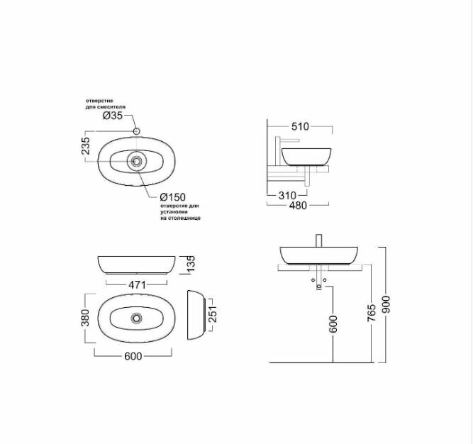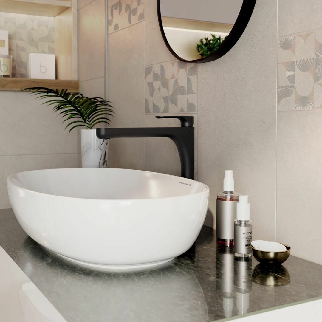 Такой вариант идеально подходит для создания минималистичного дизайна, где каждая деталь имеет значение. Накладная раковина легко устанавливается на столешницу или тумбу, что делает ее универсальным решением для разных стилей оформления.