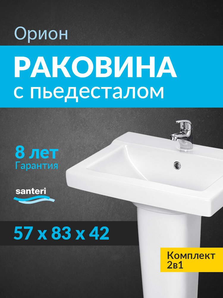 Раковина подвесная с пьедесталом Santeri Орион 60 1.3110.8. S00.11B.0. PDST белая: сравнение цен, характеристики, фото, актуальное наличие и цены.