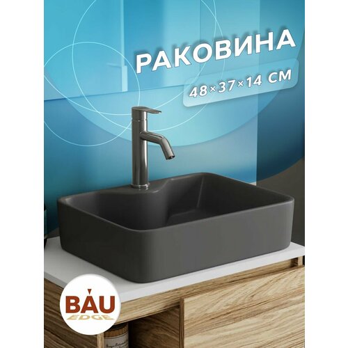 Раковина прямоугольная накладная BAU Cerama 48х37, с отверстием под смеситель, темно-серая матовая: сравнение цен, характеристики, фото, актуальное наличие и цены.