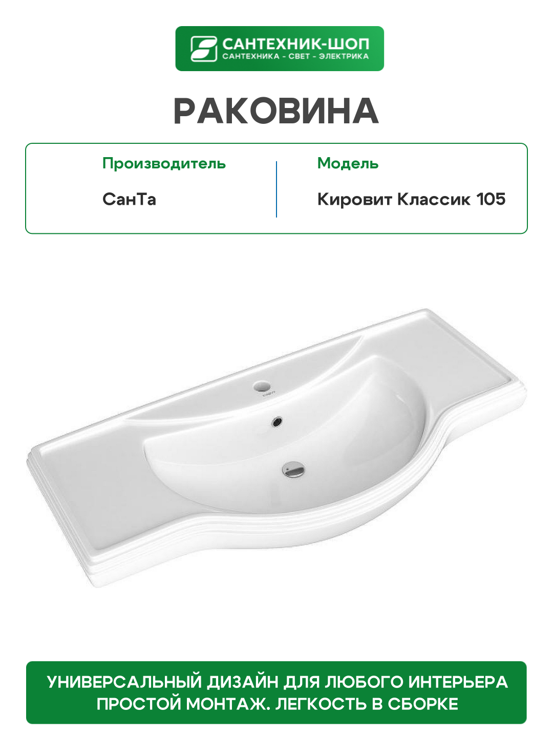 Раковина СанТа Кировит Классик 105 Белая: сравнение цен, характеристики, фото, актуальное наличие и цены.