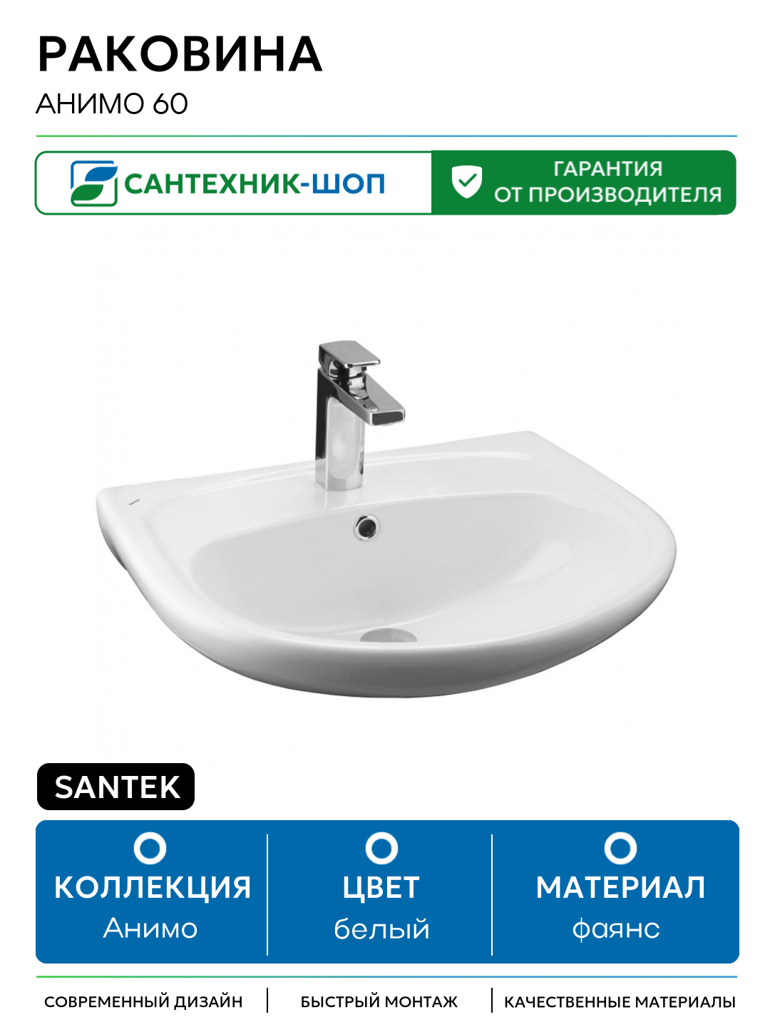Купить Раковина Santek Анимо 60 Подвесная фаянс подвесная 590 Россия с доставкой по всей России. Раковина Santek Анимо 60 Подвесная фаянс подвесная 590 Россия: сравнение цен, характеристики, фото, актуальное наличие и цены.